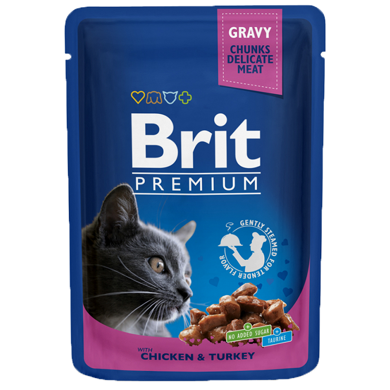 Brit Premium Chicken & Turkey (su vištiena ir kalakutiena) konservai katėms, Svoris 100 g