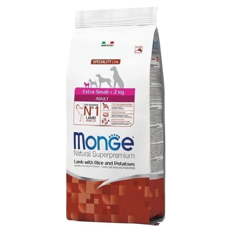 Monge Extra Small Adult Lamb (ėriena) sausas maistas šunims, Svoris 2.5 kg